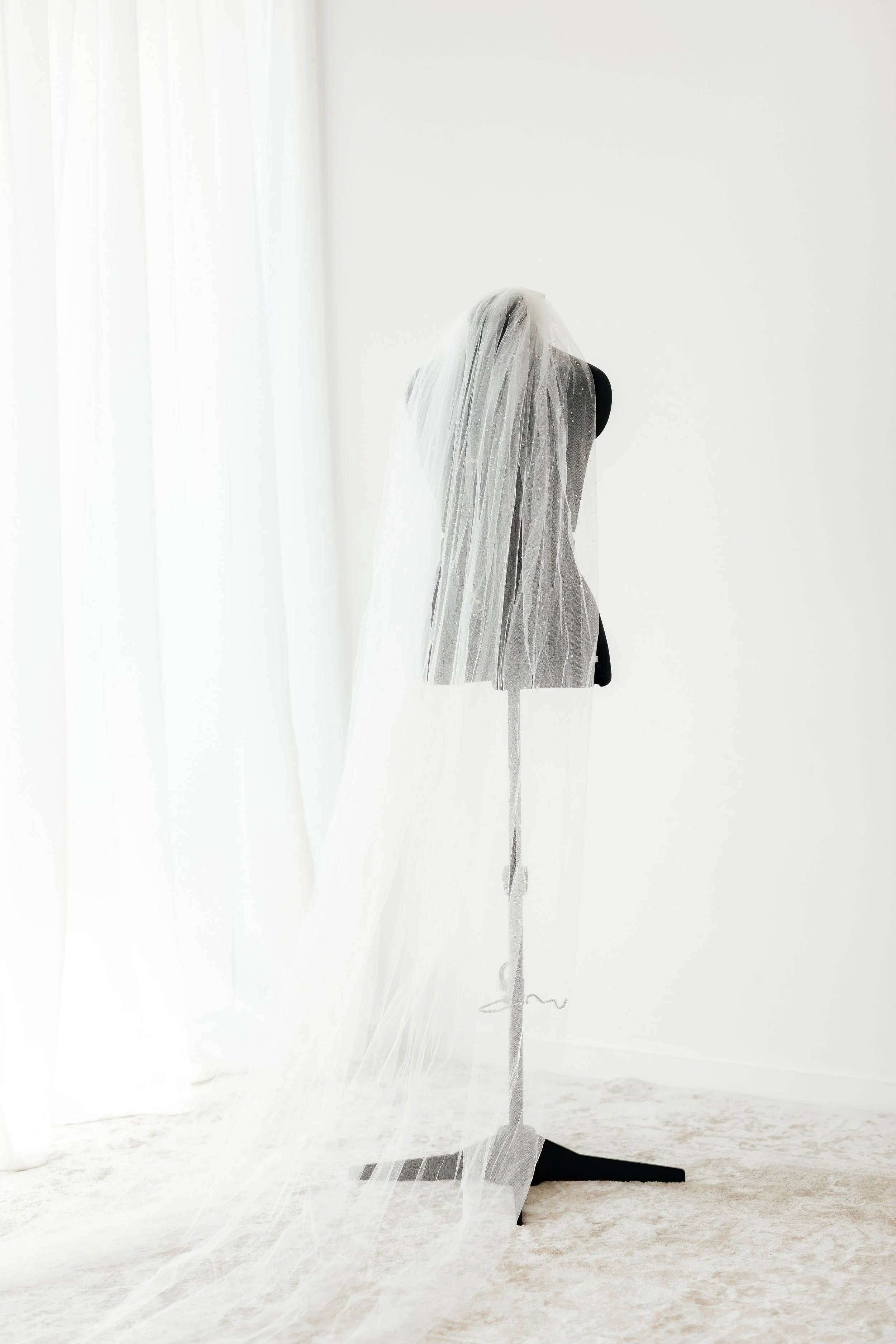 Unsure how to choose the perfect veil? Learn how to match your veil to your wedding dress style — from silhouette and fabric to embellishment and train length.